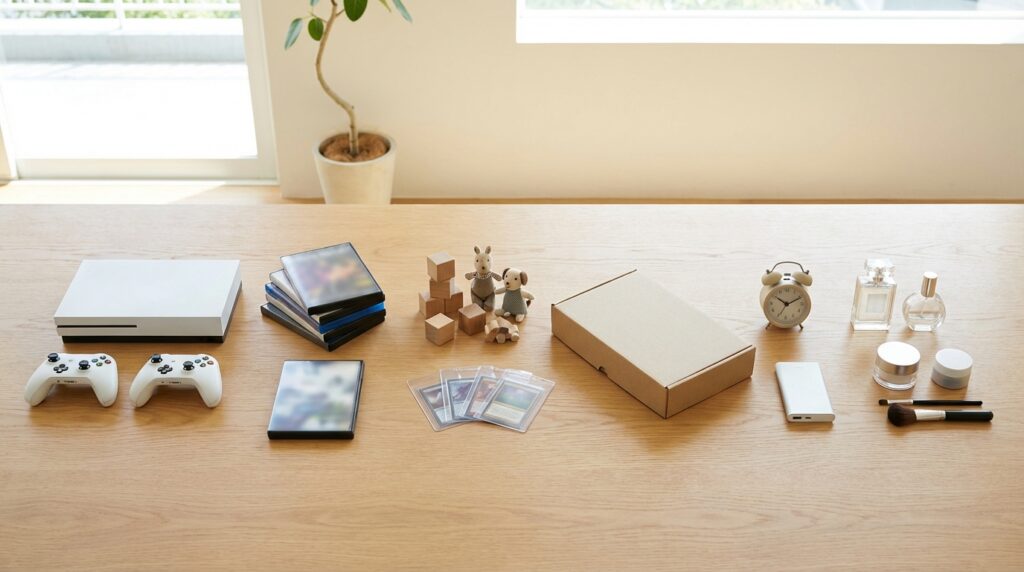 ゲーム、DVD/Blu-ray、おもちゃ、カード、プラモデル、小家電、香水、化粧品